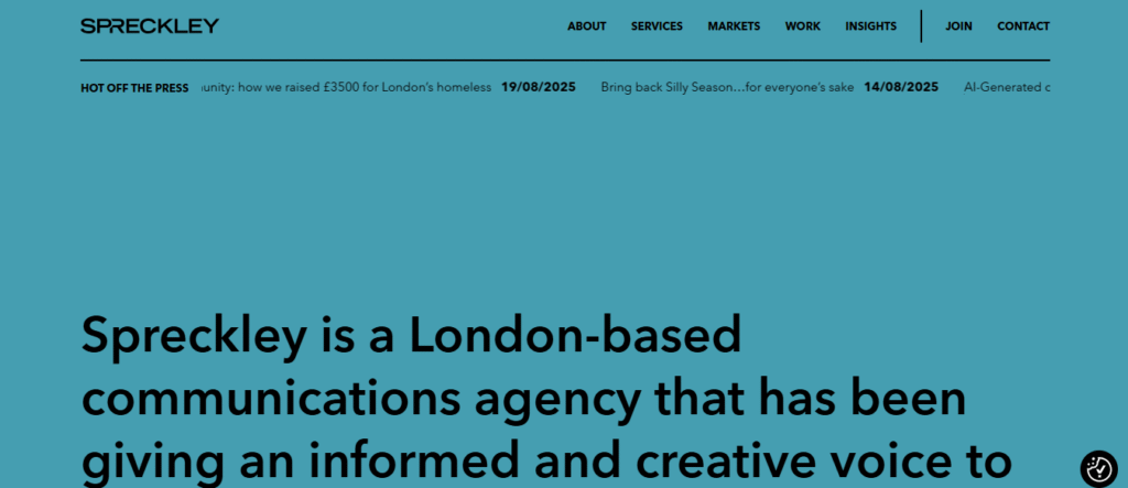 Spreckley is a go-to for corporate reputation strategy that blends crisis comms and SEO-driven PR . They analyse risk, apply disciplined messaging control, and secure placements in trusted outlets to counteract negative narratives.